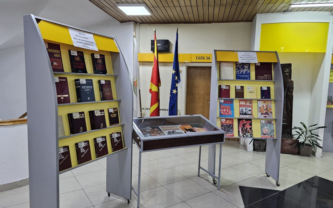 Во чест на празникот во холот на Библиотеката поставена е тематска изложба на книги – 23 ОКТОМВРИ – ДЕН НА МAКЕДОНСКАТА РЕВОЛУЦИОНЕРНА БОРБА.